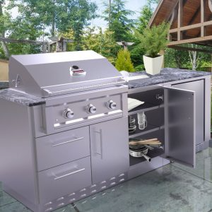 The Sunstone® Storage Cabinet with a right swing door provides plenty space and is easily accessible with its large tall door, giving you clear access to all your stored items. Comes with two full-depth shelves which can be removed to allow most ice bins, or drop-In side burners. All Sunstone Cabinets are easily installed with simple Pin-Locks, simply Lift and Drop each cabinet into each other. The Cabinet comes completely setup, only fasten Door Handle, Hand-Screw each Adjustable Leg in place, and Snap on the Front and Back Kick-Plates.